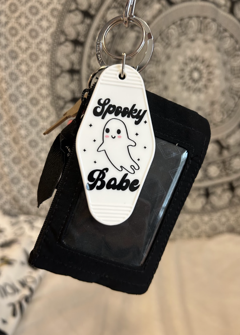 This personalized high-quality motel ghost keychain is perfect to put on your car keys and more! I made this product using permanent vinyl. The material is long-lasting and durable! The product is handmade with love and specifically designed for you! :)